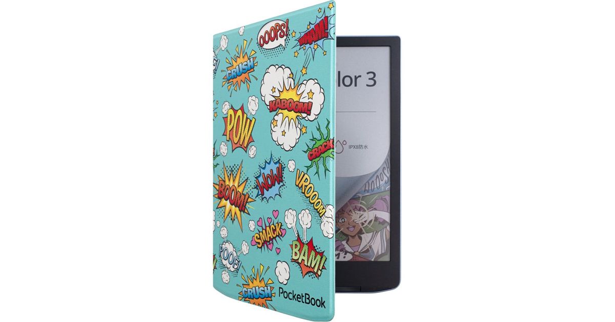 Protect your e-reader in style with a comic design cover. This light and elegant flip cover is compatible with PocketBook models InkPad 4, InkPad Color 2, and InkPad Color 3.