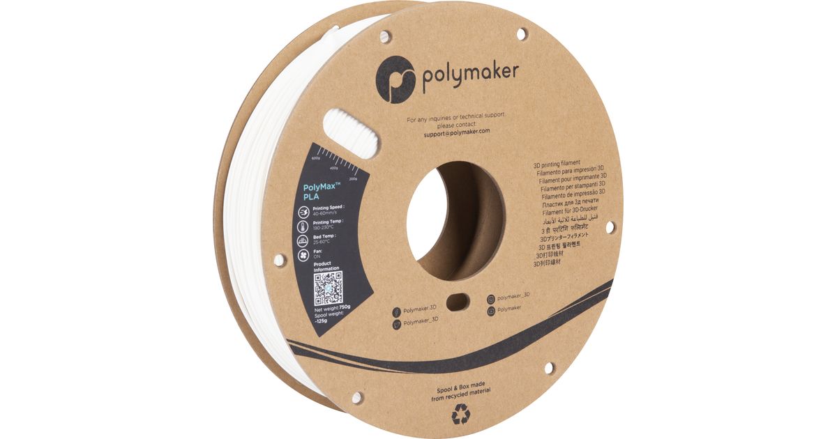 Polymaker PA06002 materjal 3D-printimiseks Polülaktiid (PLA) Valge 750 g