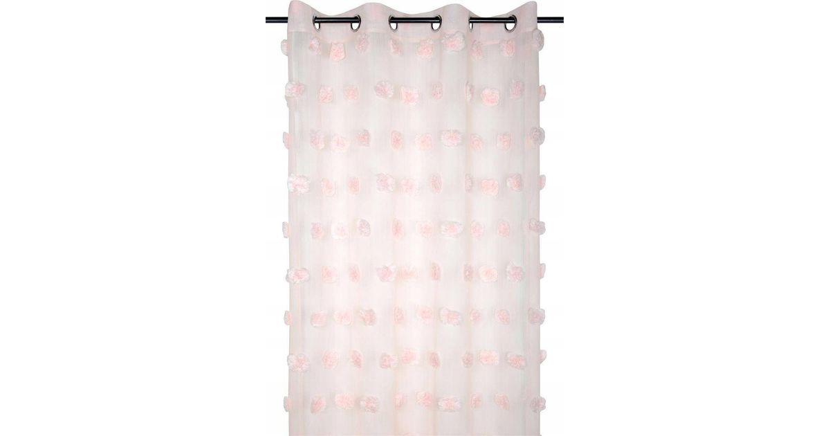 POMPINOU kardin, puuderroosa, pompoonid, 135 x 260 cm