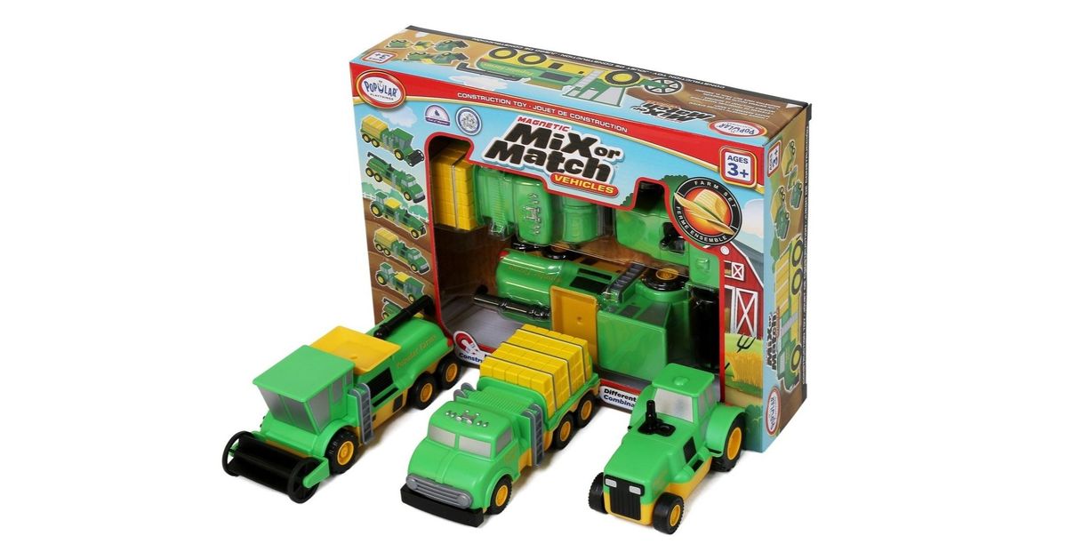 Popular Playthings Magnetic Mix or Match, Sõidukikomplekt, 3 aasta(t), Must, Roheline, Kollane