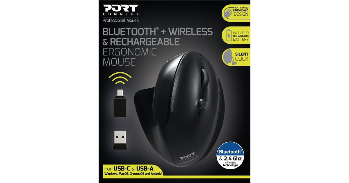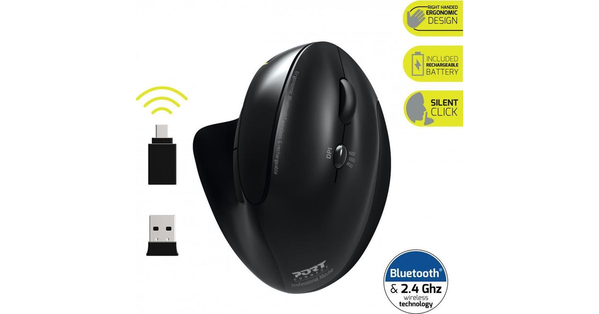 Port Designs 900706-BT, Parempoolne, Optiline, RF juhtmeta + Bluetooth, 1600 DPI, Must