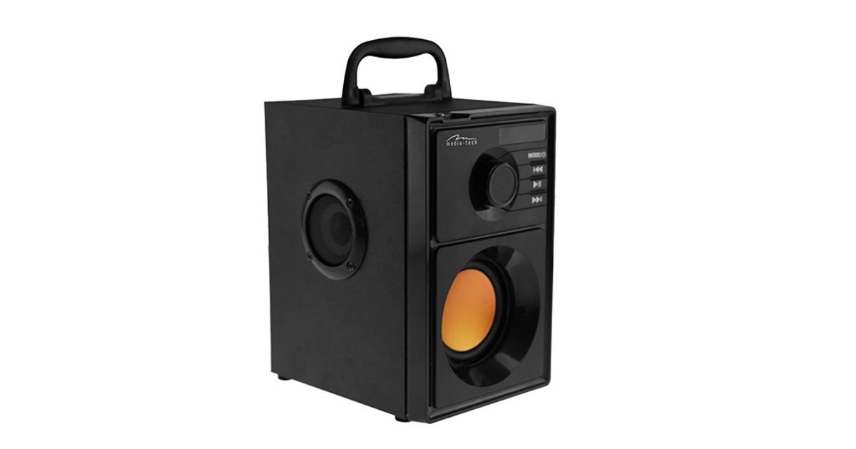 Media-Tech presents a compact Bluetooth speaker BOOMBOX BT MT3145 with a built-in subwoofer and two mid-range speakers. The total power of the set is 15W RMS.