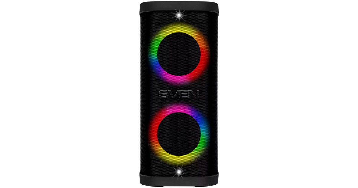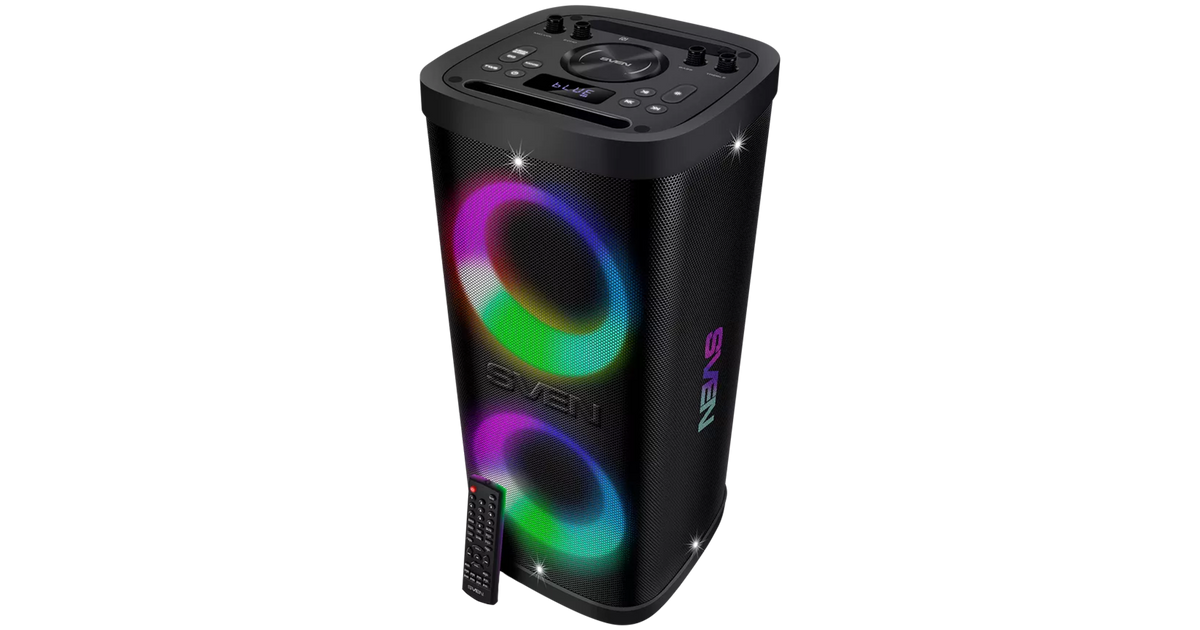 Portable speaker SVEN PS-950, black, power output 2x80W (RMS), TWS, Bluetooth, IPx4, FM, USB, microSD, LED-display, lithium battery