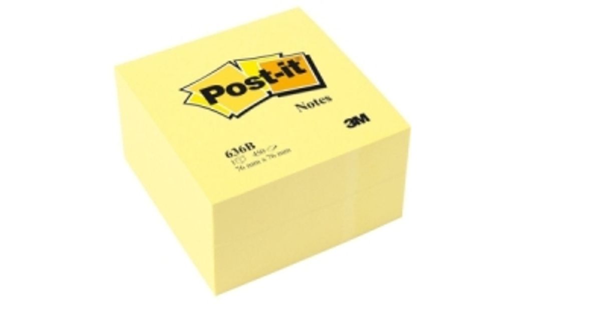 Post-It 636-B, Nelinurkne, Kollane, Paber, 76 mm, 76 mm, 450 lehte