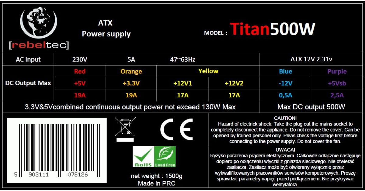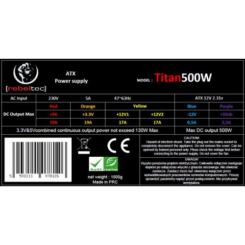 Power supplay ATX ver2.31 TITAN 500W