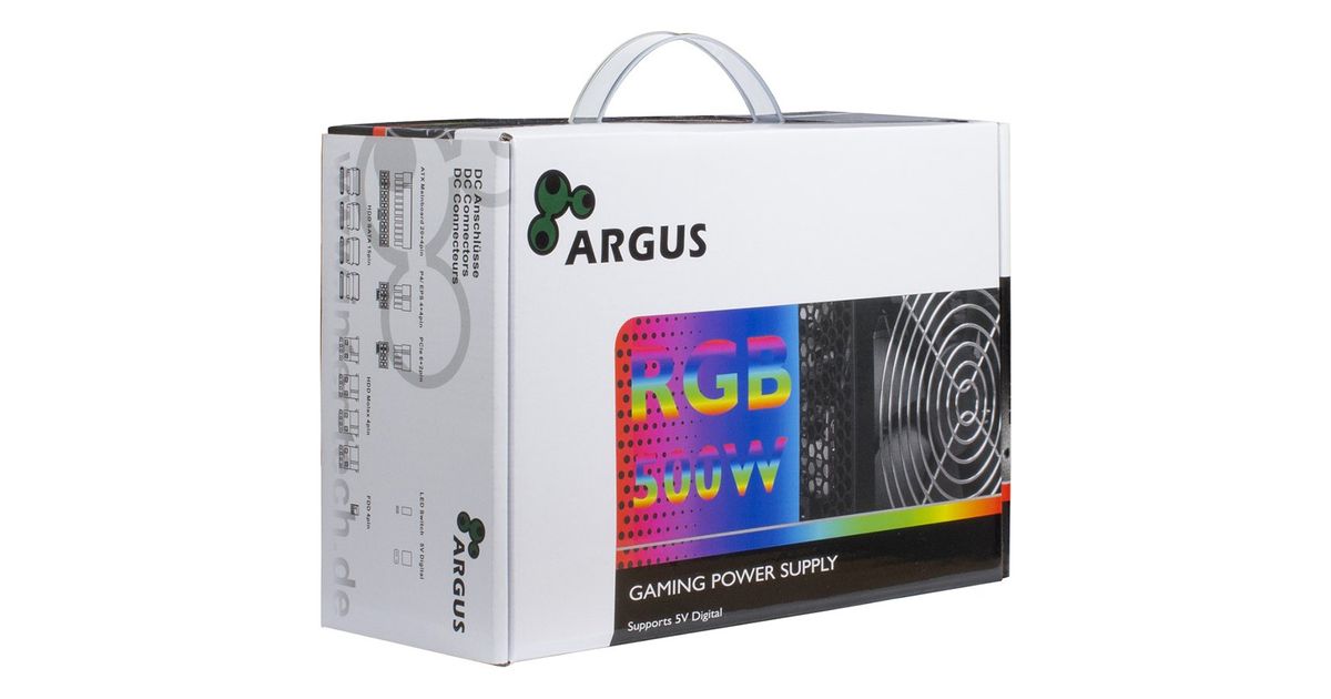 Power Supply INTER-TECH Argus RGB, 80PLUS Bronze, 500W, Retail, 1x140 Fan, 1x20+4Pin, 4+4Pin, 1xPCI-e 6+2Pin, 4x4Pin (Molex), 4xSATA, 1xFDD, rev 2.0