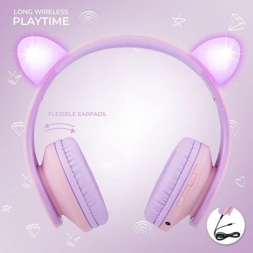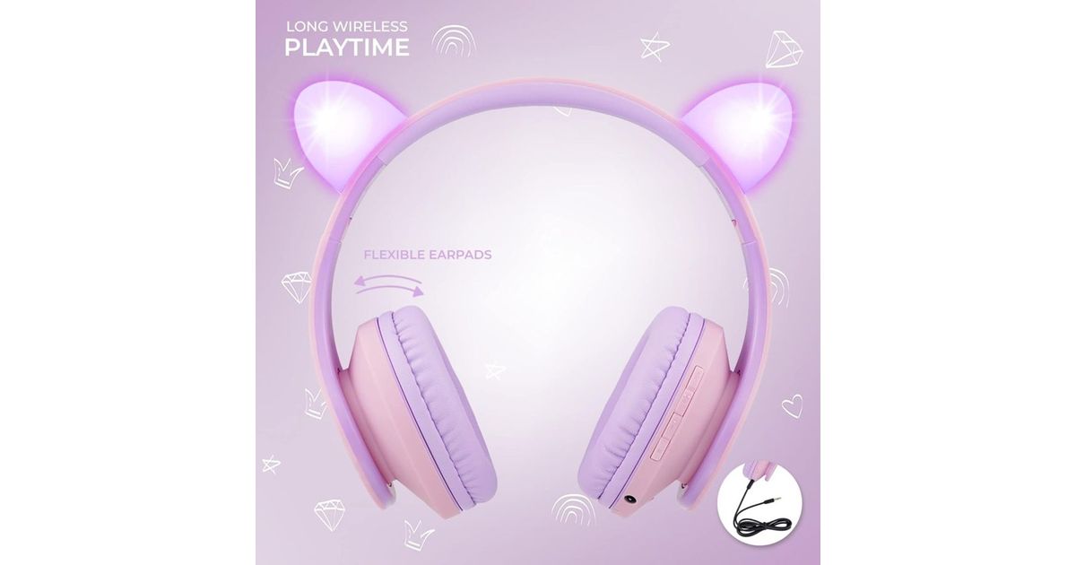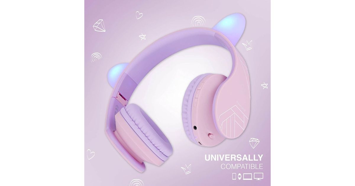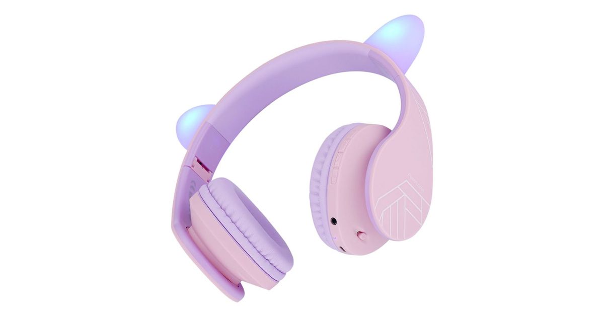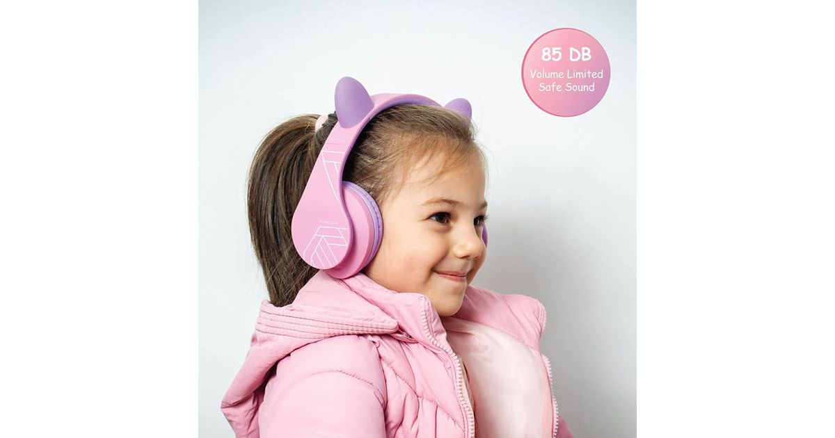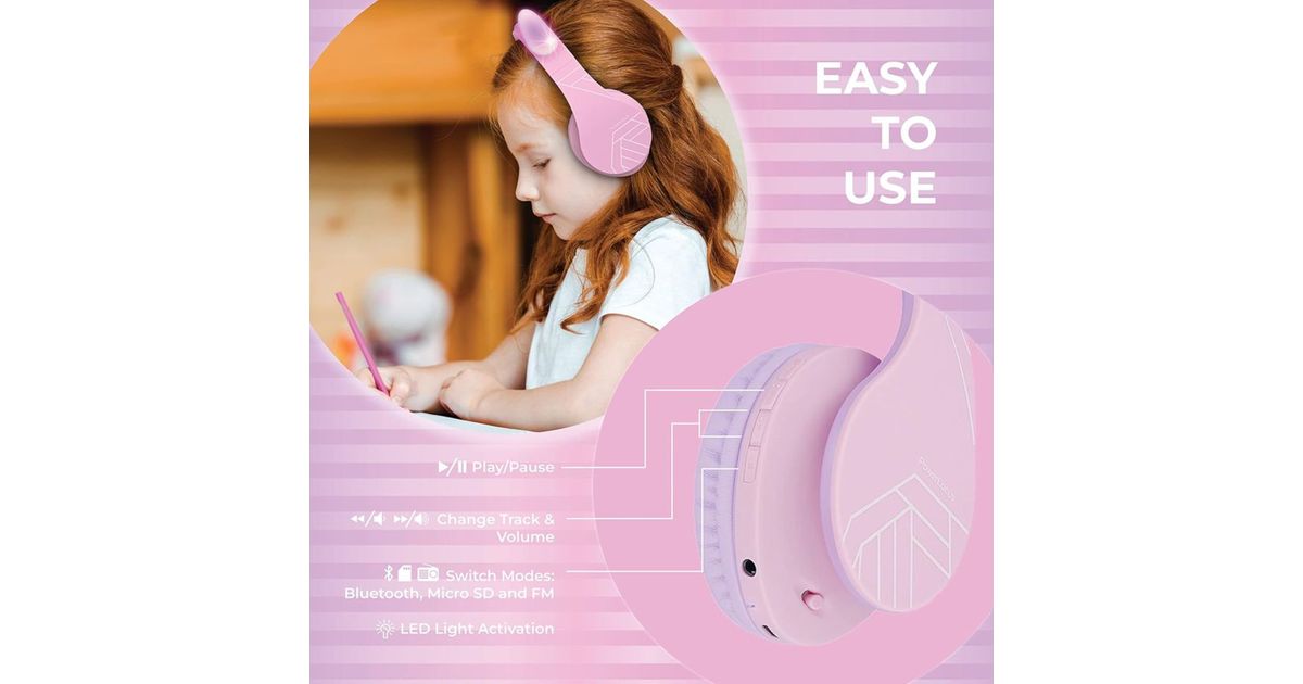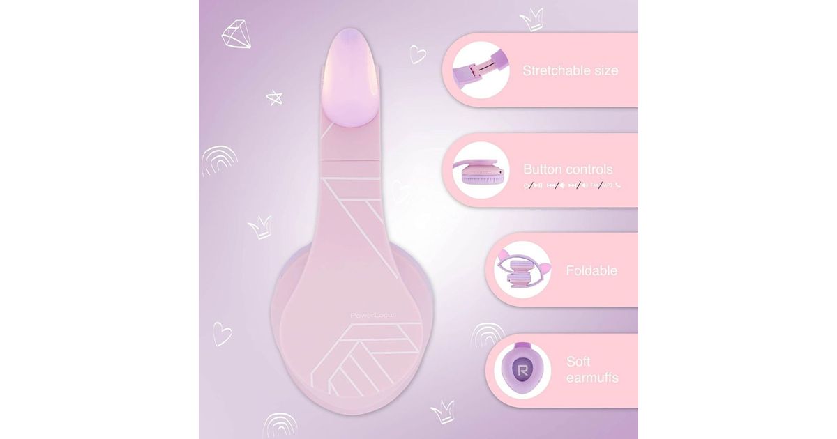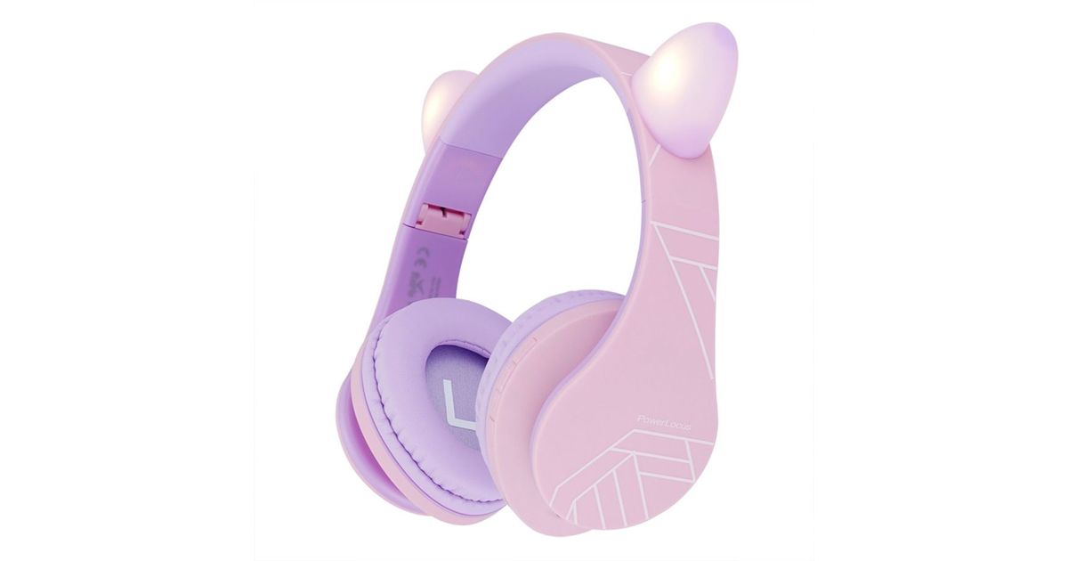 PowerLocus P2 Headphones for Kids: Design in Purple/Pink with Ears