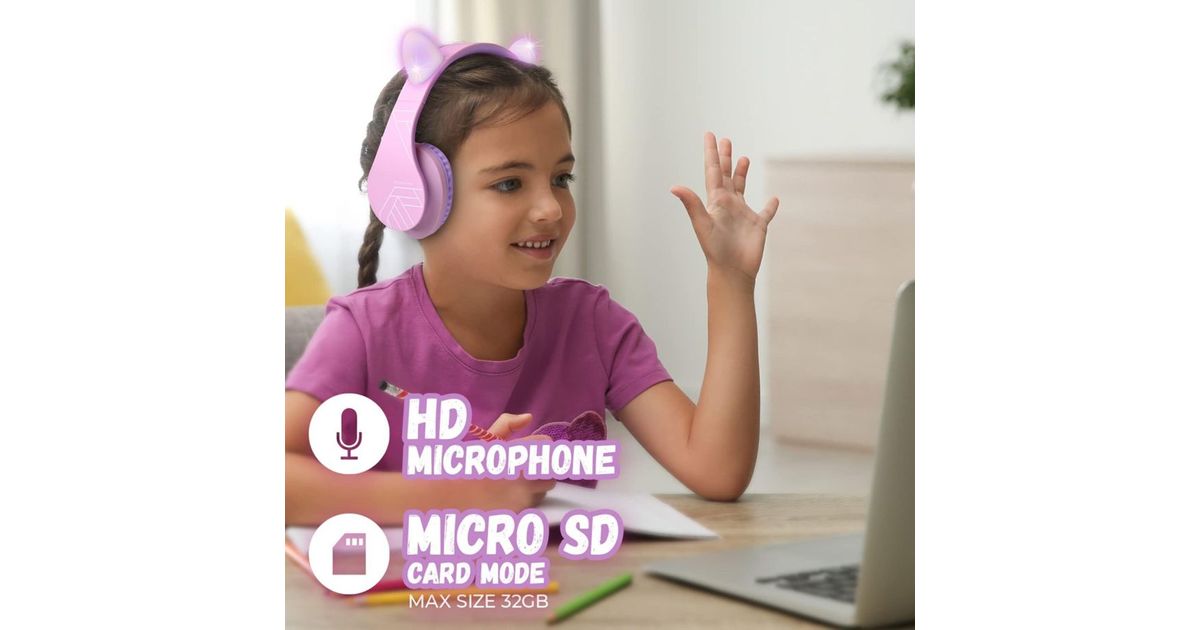 The soft ear cushions and adjustable headband ensure a comfortable fit, even during extended use. The foldable design makes the headphones easy to transport and ideal for on-the-go. Additionally, they feature a cool design with ears that appeals to children and brings them joy.