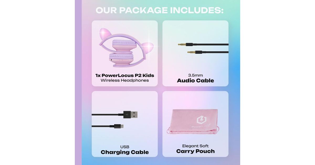 PowerLocus P2 offers clear highs and rich bass. The limited volume protects children's hearing and ensures that the music is played at a safe volume. The headphones are perfect for music, audiobooks, and learning content.