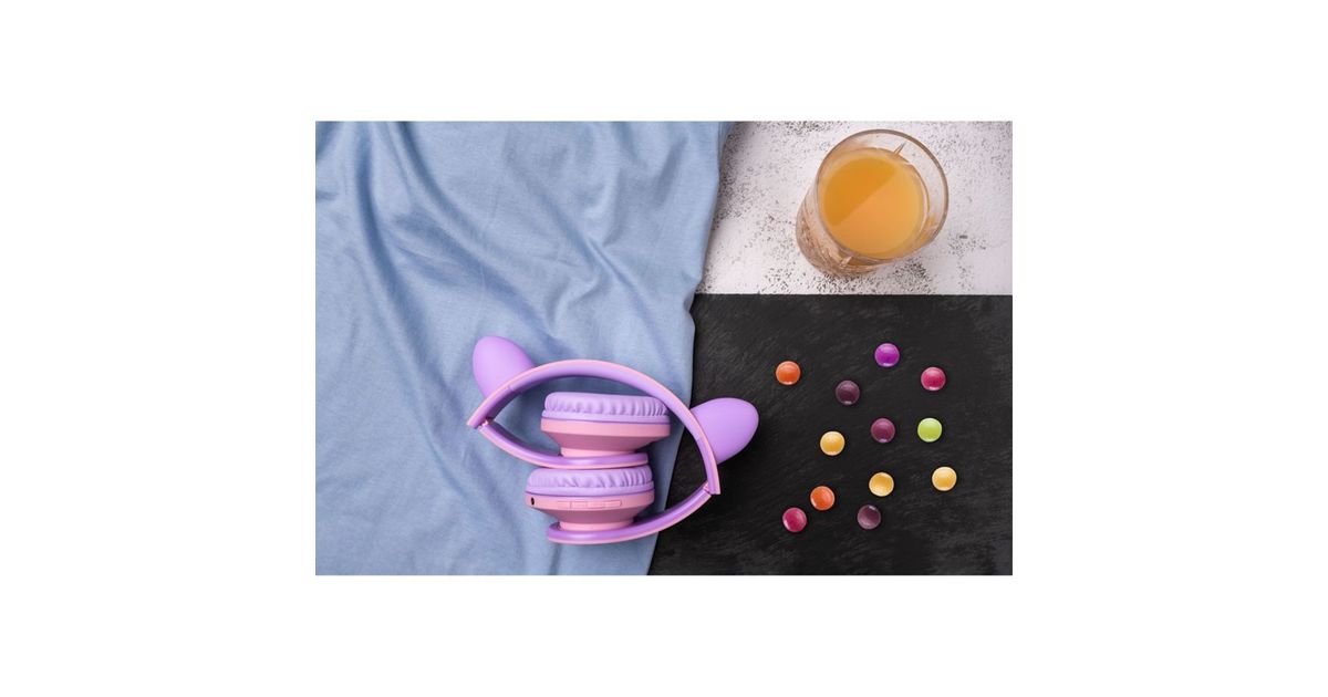 PowerLocus P2 Kids Headphones purple/pink with Ears