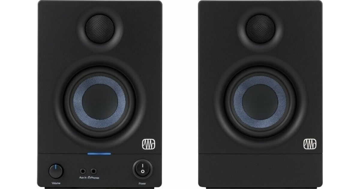 PreSonus Eris-series studio monitors are used worldwide by audio engineers and producers who need to hear every detail of their recordings. Eris 3.5 media reference monitors deliver studio-quality sound in an elegant, compact form factor that makes them ideally suited for bedroom studios, video production, and high-fidelity gaming set-ups.With 25 watts per side of onboard power, the Eris 3.5 reference monitors pack a serious low-end punch, while still delivering clear, accurate audio. Improved speaker voicing over previous designs delivers richer lows and a smoother crossover transition for articulate, accurate transient reproduction through the frequency range and a less fatiguing listening experience.Flexible connection options and a convenient, integrated headphone output make Eris 3.5's at home in any environment - from home studios to dorm rooms. High- and low-frequency controls make it easy to adjust your Eris speaker's frequency response to taste and ensure optimal performance in any space. Whether you're making music or listening to your favorite albums, Eris 3.5 provide a studio-quality sound that will bring your audio to life.3.5-inch, woven-composite, low-frequency transducer1-inch (25 mm), ultra-low-mass, silk-dome, high-frequency transducerRCA and ¼-inch balanced TRS plus 1/8-inch stereo Aux In for use with mobile audio devices50W (25W/side) Class AB amplificationIntegrated headphone amplifier with front-panel stereo 1/8-inch jack