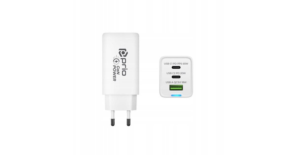 Prio Fast Charge Wall Charger 65W PD USB C1 +C2+ QC 3.0 USB A white LAD_PWC-1302 (4067397033932)