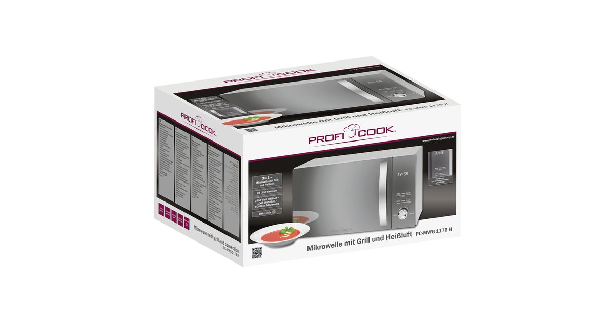 ProfiCook PC-MWG 1176 H, Tööpinna peal, Kombineeritud mikrolaineahi, 23 l, 800 W, Nööbid, Pöörlev, Roostevaba teras