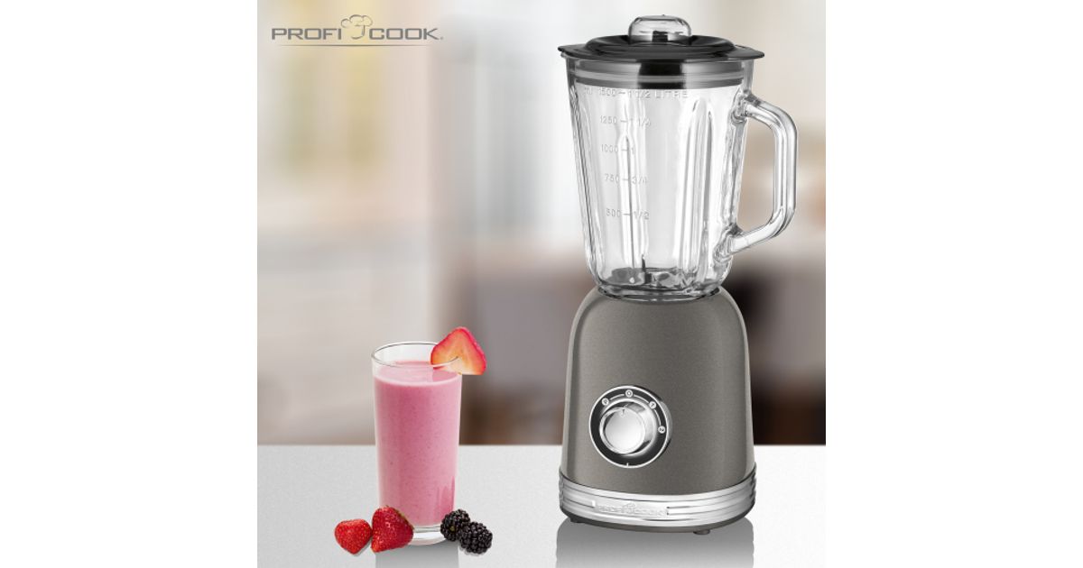 ProfiCook PC-UM 1195, Lauapealne blender, 1,5 l, Impulssfunktsioon, Jääpurustamine, 800 W, Söehall, Läbipaistev