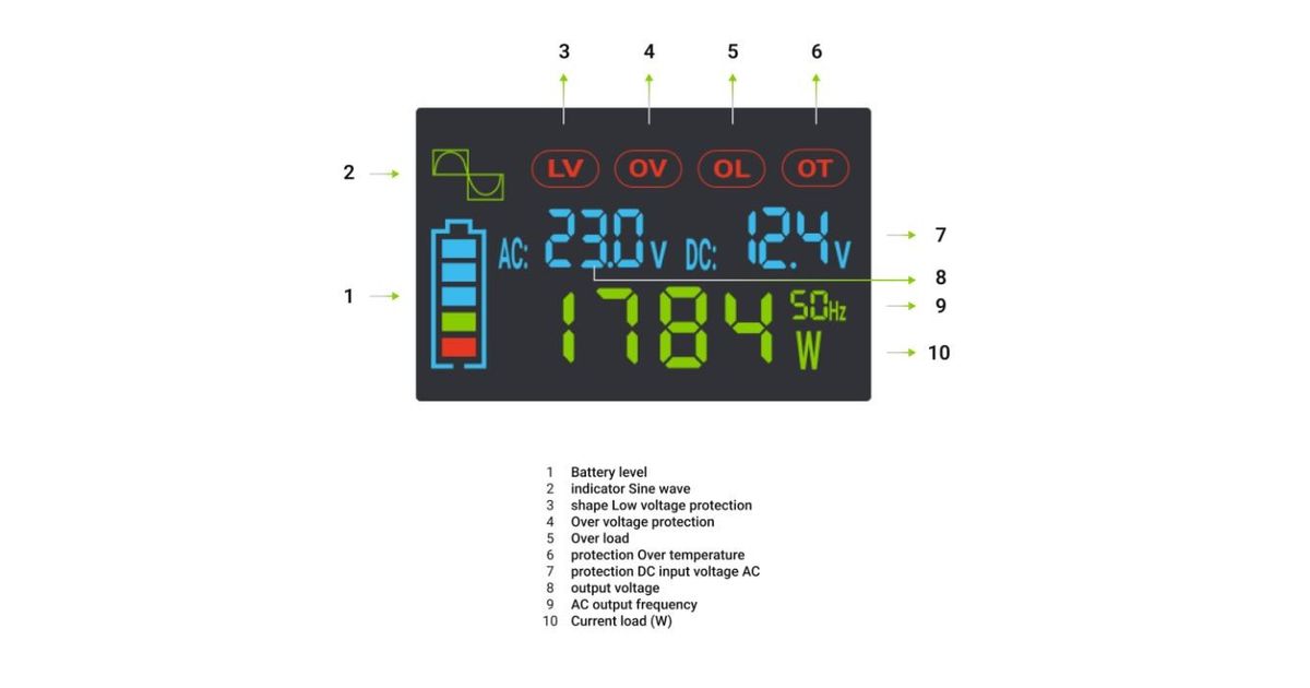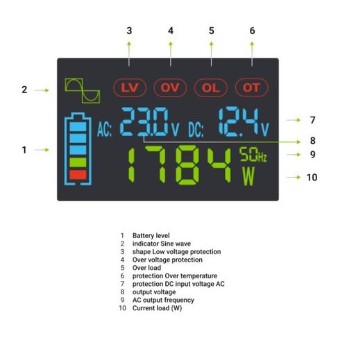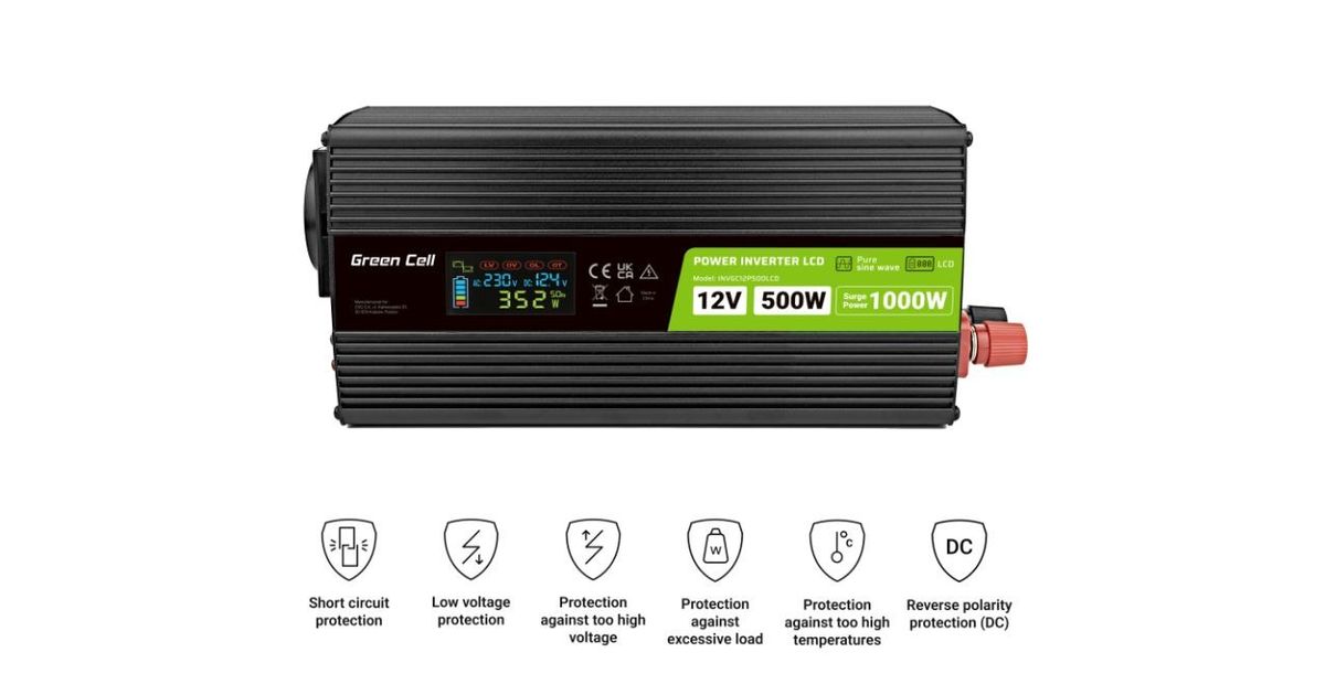 Przetwornica napięcia Green Cell PowerInverter LCD 12 V 500W/1000W Przetwornica samochodowa z wyświetlaczem - czysty sinus