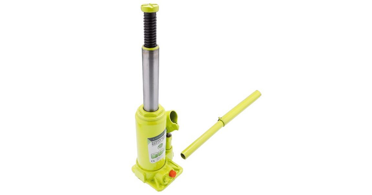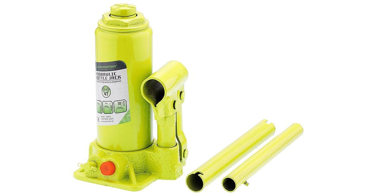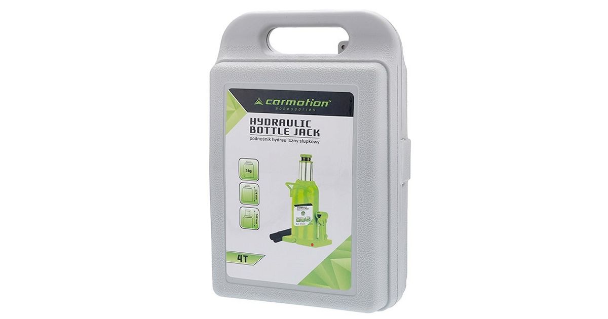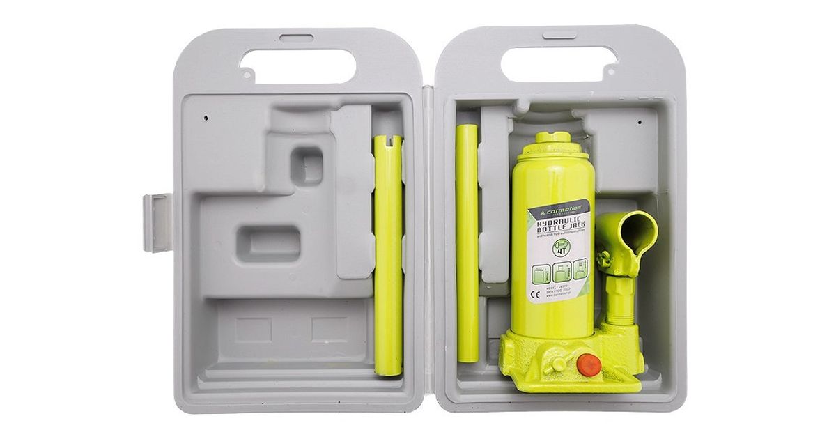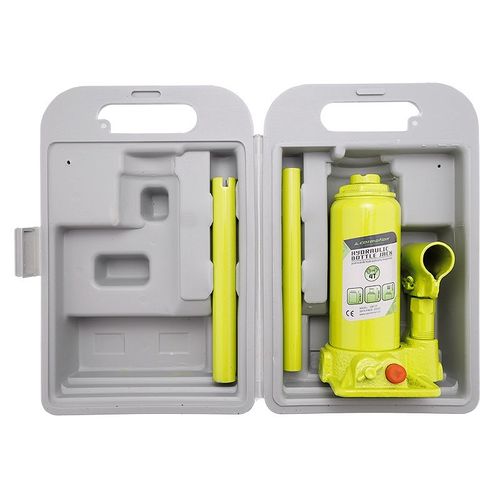 Klassikaline pudeltungraud. Hüdrauliline tõstesilinder. millele lisaks keermega kruviosa. Valuterasest toetusplaadiga põhi. Plastkohvris.