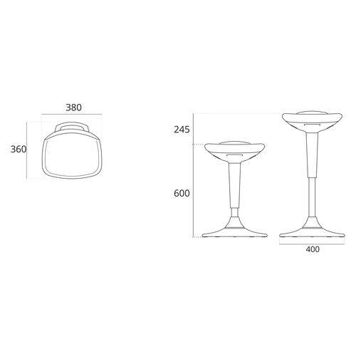 Mugav multifunktsionaalne tasakaaluiste pakub erinevaid kasutusvõimalusi. Plastikust (PP) vormitud pehme polsterdusega iste on kaetud kangaga. Istme kõrgus reguleeritav gaasamordi abil 60 - 84,5cm. Trompetikujuline alus on varustatud vastukaaluga, mis tagab istmele stabiilsuse igas asendis. Aluse elastomeerist põhi haardub hästi erinevast materjalist põrandapindadega. Kaalupiirang 120kg.