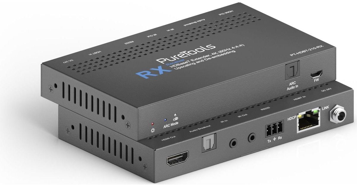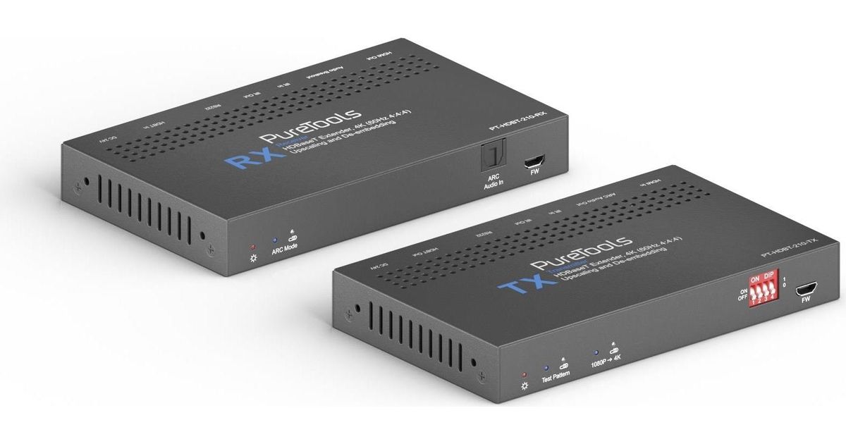 PureTools PT-HDBT-210, 3840 x 2160 pikslit, AV saatja ja vastuvõtja, 70 m, Juhtmega ühendatud, Must, HDCP