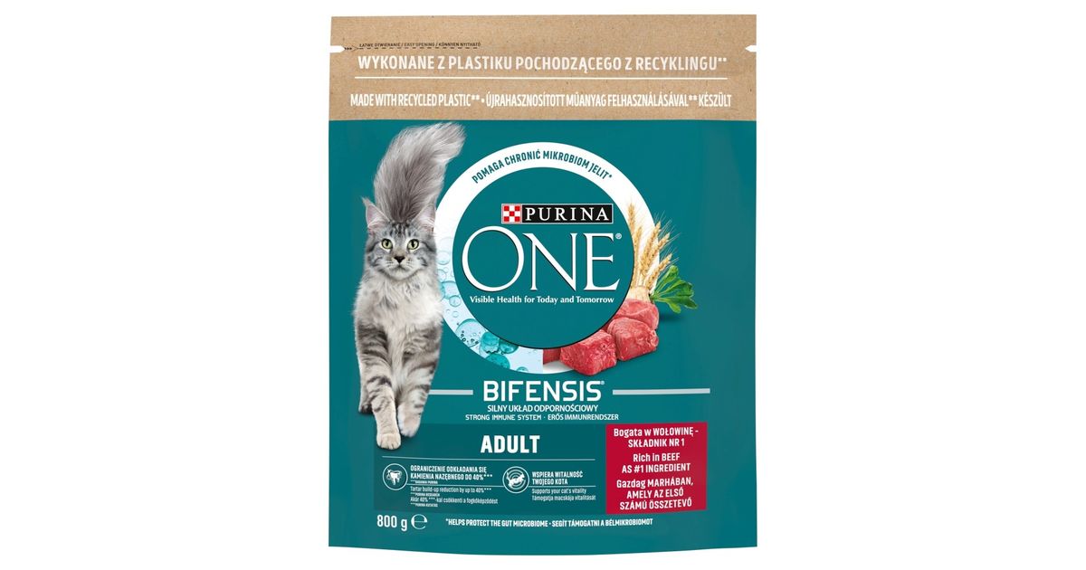 PURINA One Bifensis Adult Bogata w Wołowinę i Pełne Ziarna - sucha karma dla kota - 800 g