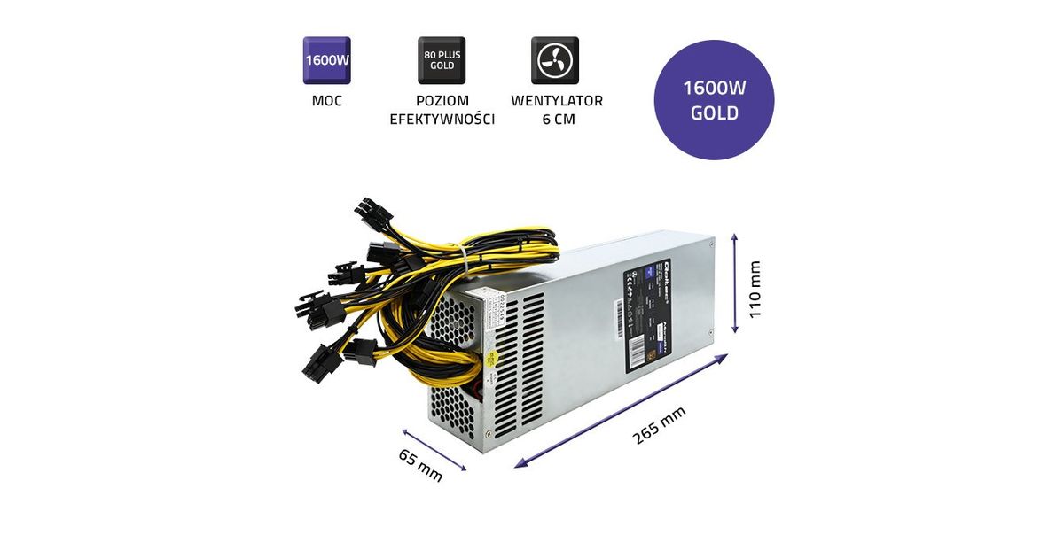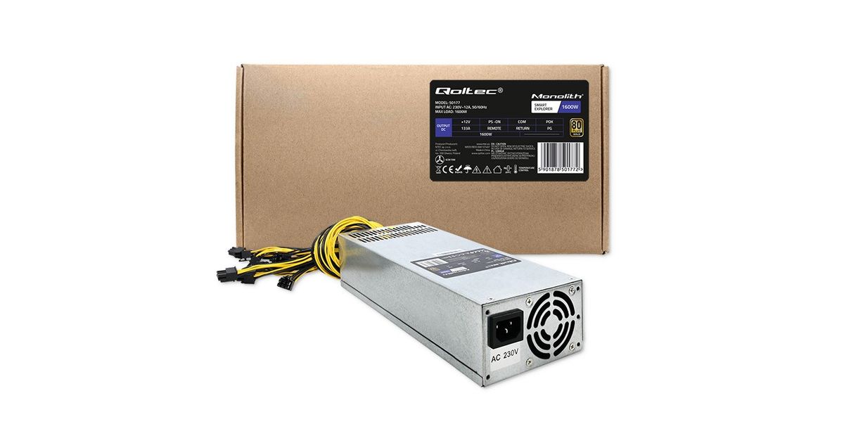 Qoltec 50177 PCI-E power supply Smart 1600W | 80 Plus Gold - Data mining
