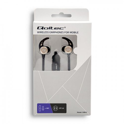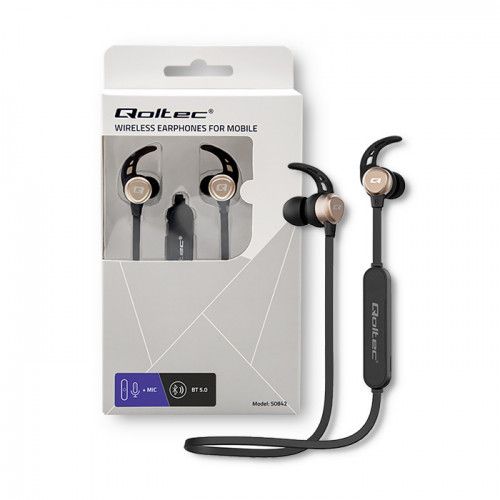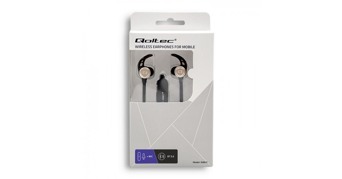 Qoltec 50842 kõrvaklapid ja peakomplekt Juhtmevaba Kõrvakonks Kõned/muusika Mikro-USB Bluetooth Must, Kuld