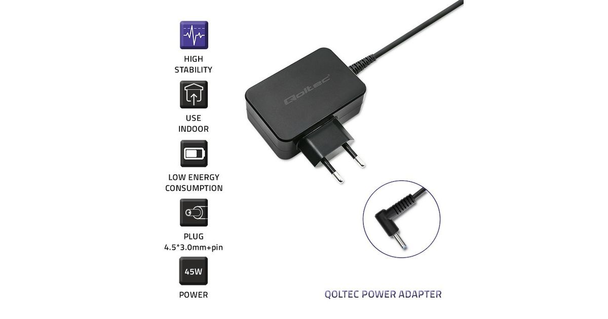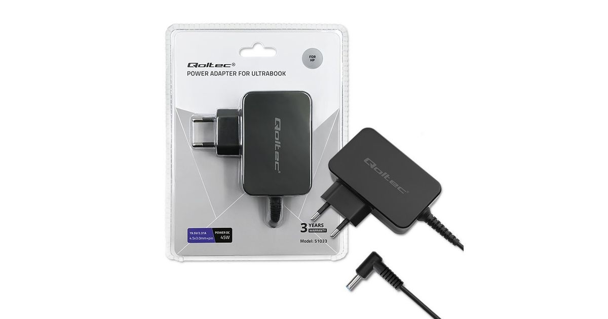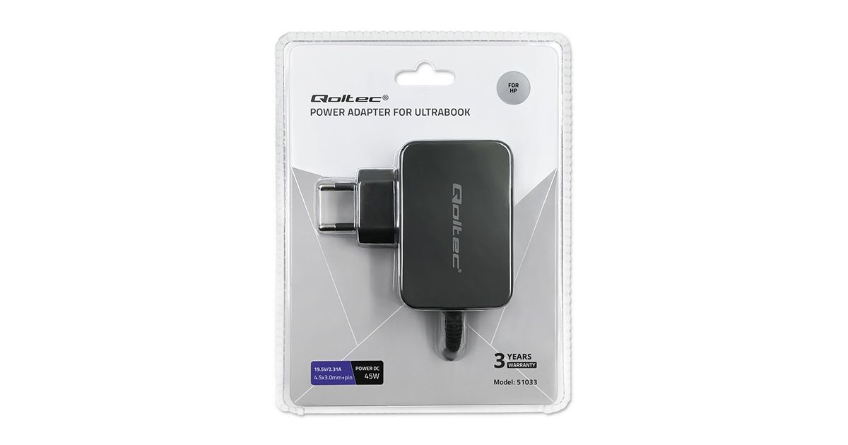 Qoltec 51033, Sülearvuti, Hoonesisene, 220 - 240 V, 50 - 60 Hz, 45 W, 19.5 V