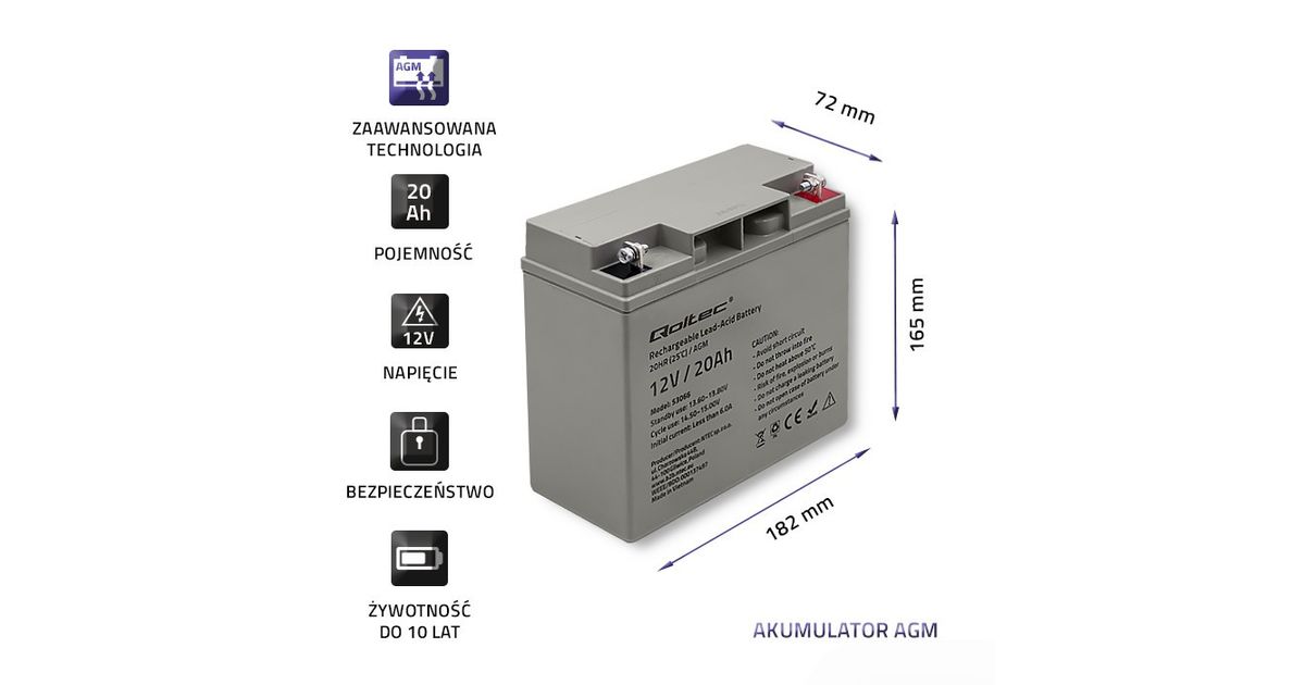 QOLTEC 53066 AGM battery 12V 20Ah
