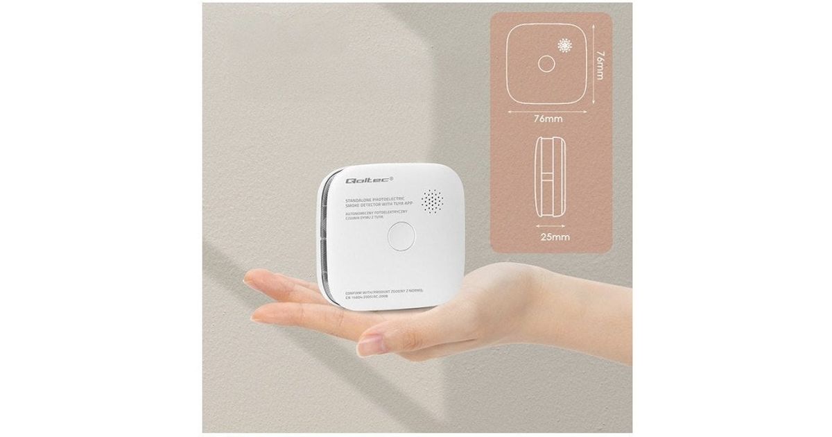 qoltec Czujnik dymu z baterią | Tuya | Wi-Fi | alarm 85dB | LED
