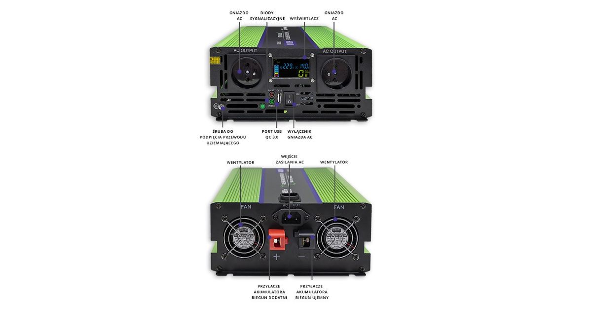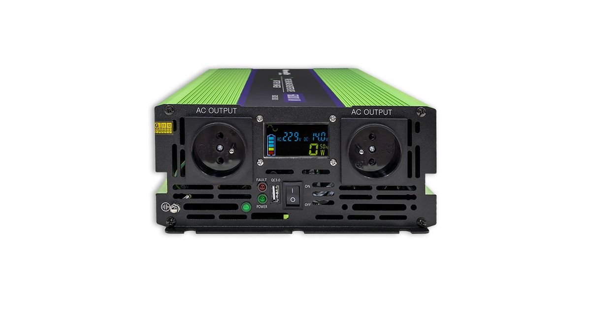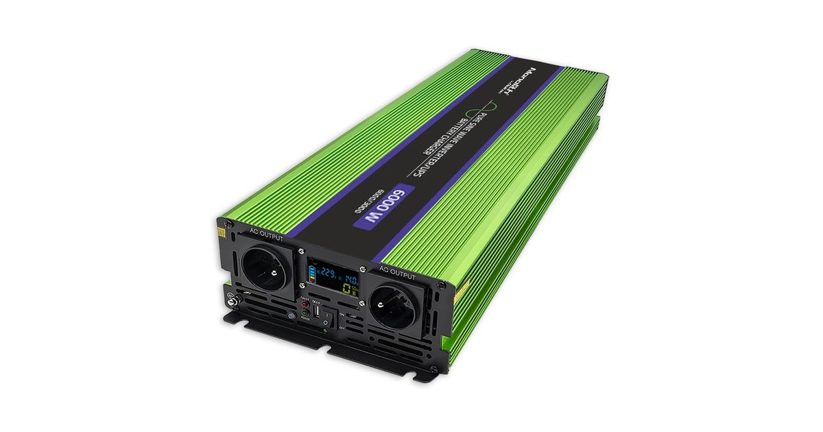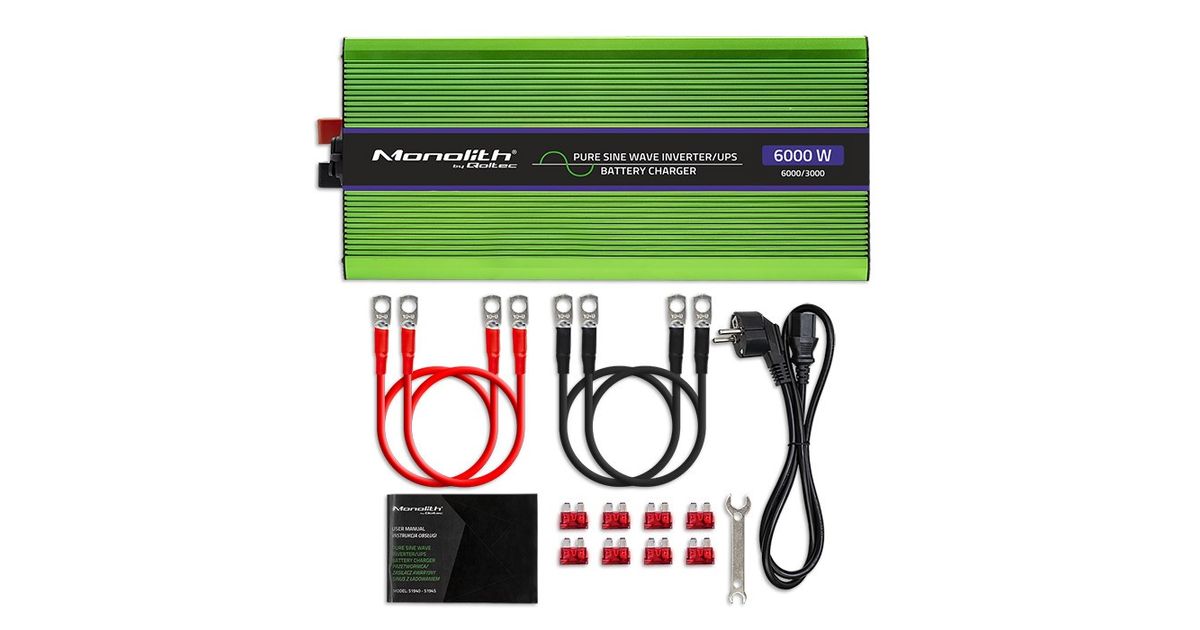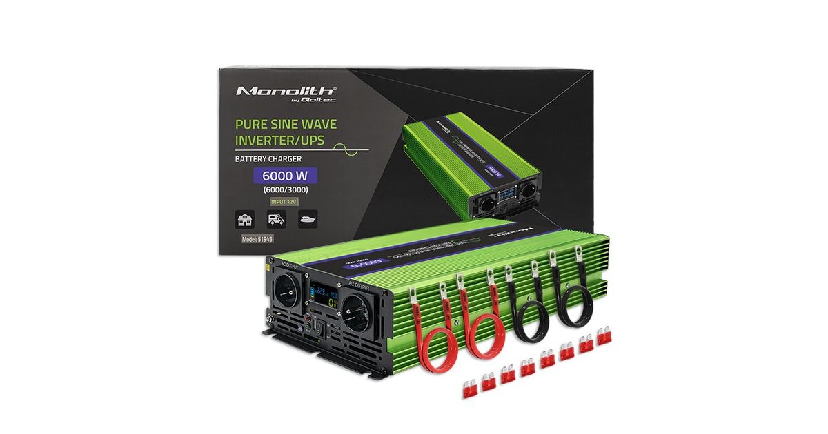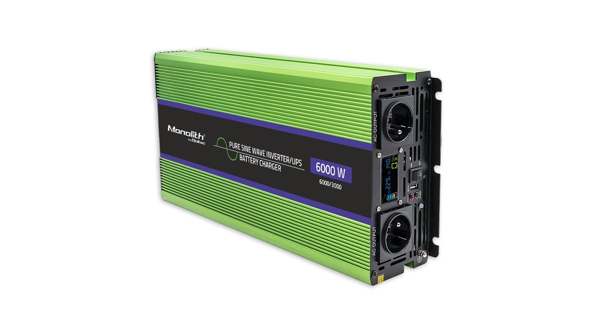 Qoltec Monolith, Autoinverter, Automaatne, 12 V, 6000 W, 230 V, Roheline