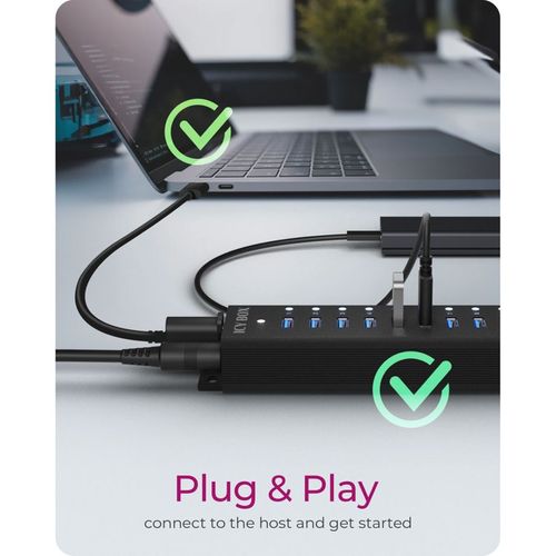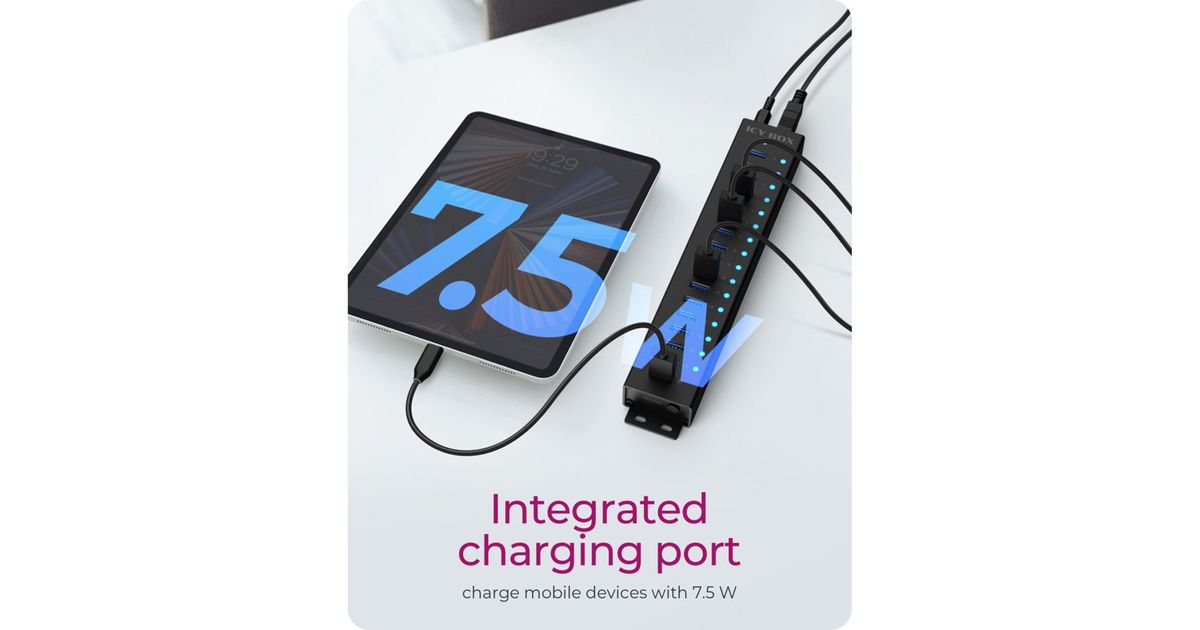 - The IB-HUB1717-U3 features a dedicated USB charging port to charge mobile devices with up to 7.5W charging power
