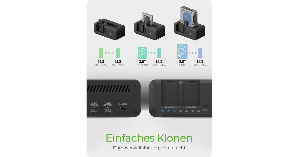 - Cloning of 2.5" / 3.5" SATA to M.2 NVMe or M.2 NVMe to M.2 NVMe