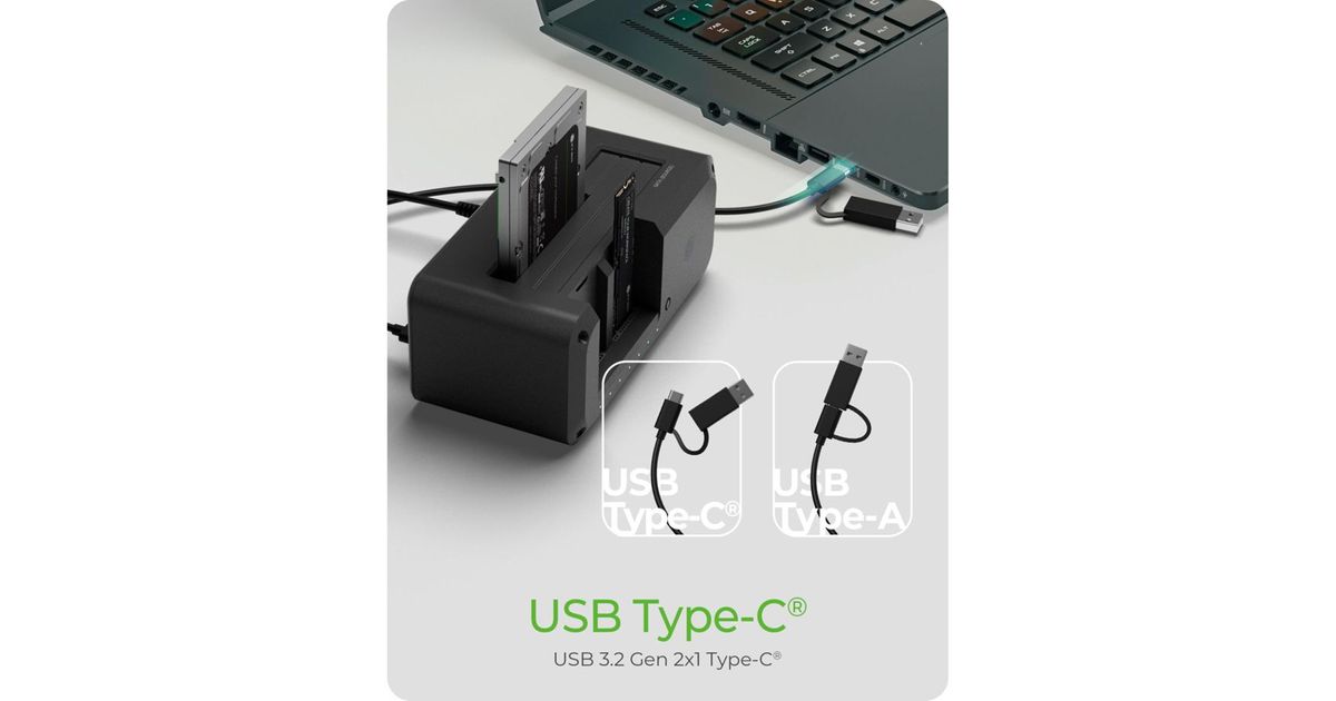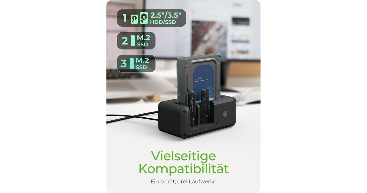 A USB 3.2 Gen 2 clone & DockingStation to improve your data management and storage solutions. The device is suitable for both 2.5"/3.5" SATA and M.2 NVMe SSDs, offering flexibility and convenience for professional and home users. The IB-2924MSCL-C31 Clone & DockingStation is the ultimate tool for reliable data management. Its versatility, speed and intuitive design are of great value to all users who rely on effective digital storage solutions.
