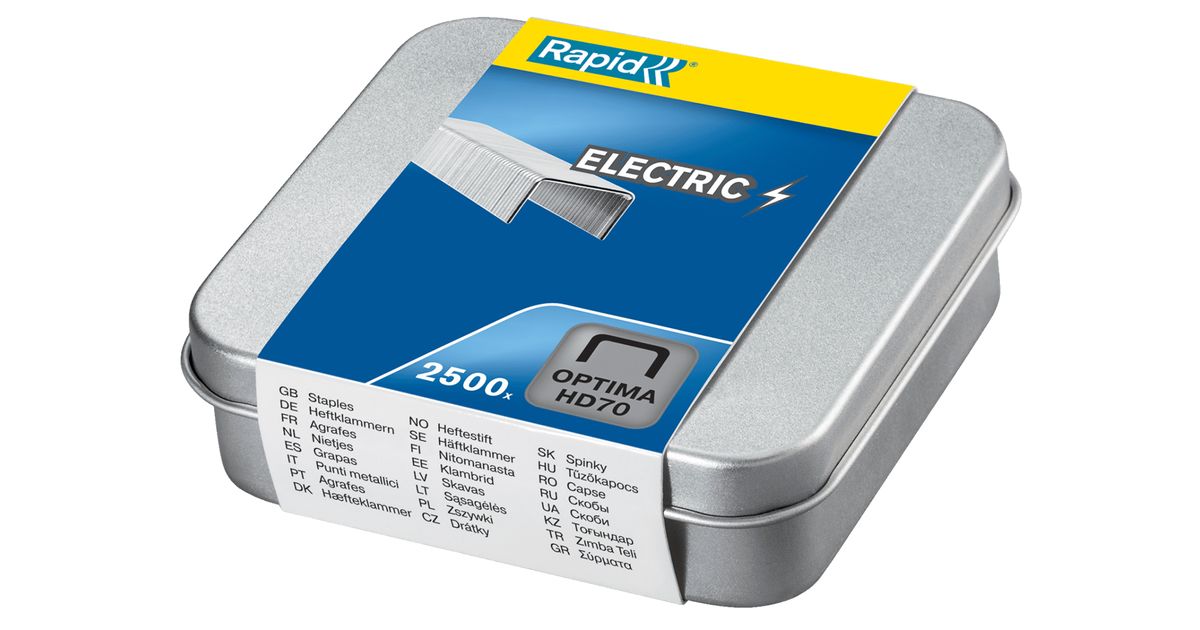 Rapid Optima HD70, Naeltepakk, Kinnitus, 2500 klambrit, Hõbe, 70 lehte, Paber
