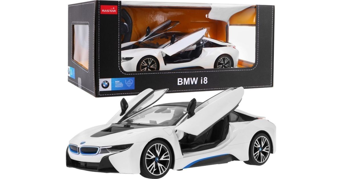 Rastar BMW i8 valge RASTAR mudel 1:14 Kaugjuhitav auto + 2,4 GHz pult