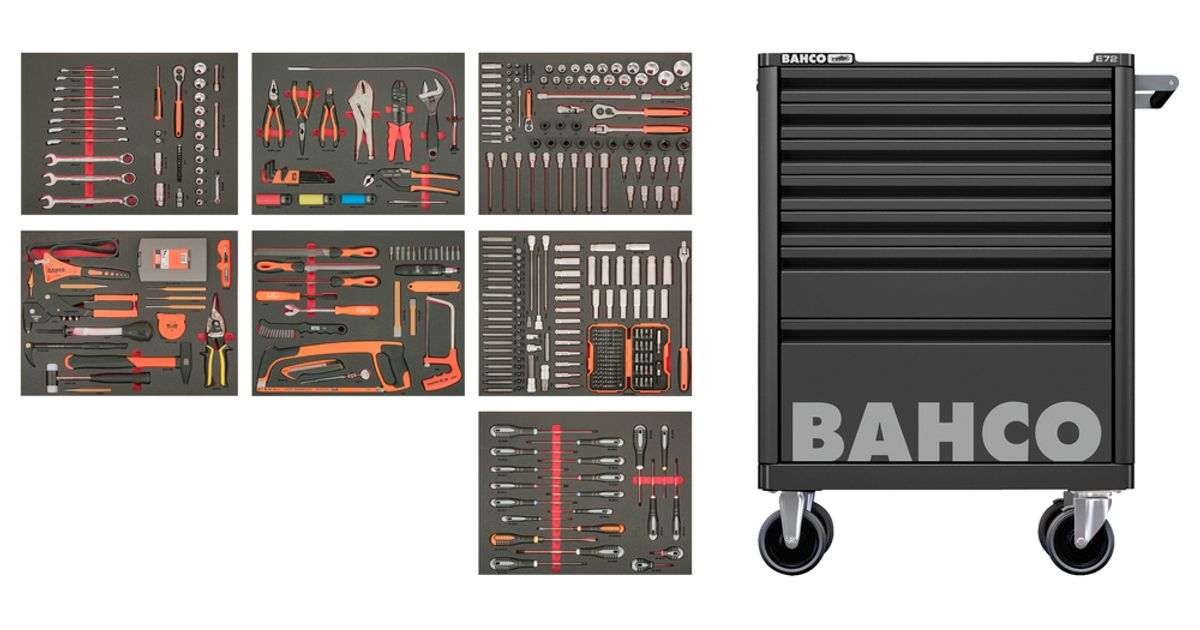 Ratastel tööriistakäru E72 950x782x510mm 7 sahtliga ja 428 tööriistaga, must