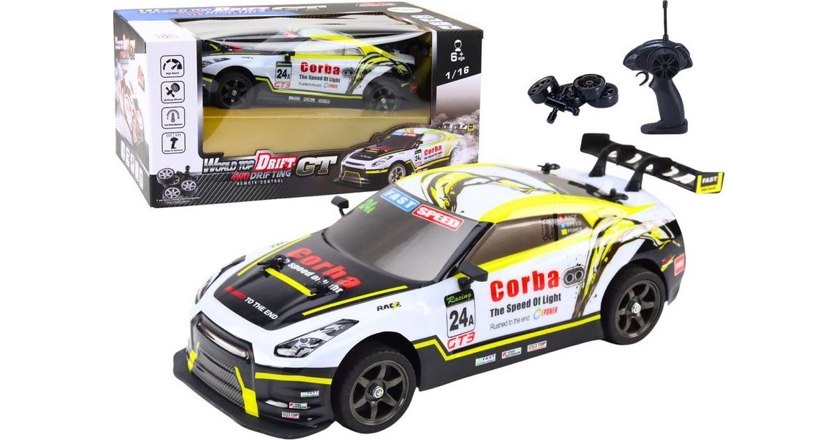 RC Sports Car 1:16 Drift vahetatavad rattad valged ja kollased