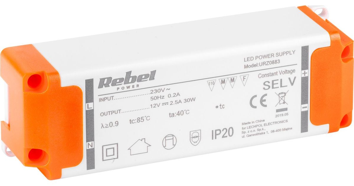 Rebeli toiteplokk REBEL toiteplokk LED stringidele 12V 2.5A (YSL36-1202500) 30W max.