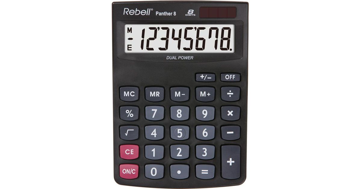 Rebell Panther 8, Lauaarvuti, Tavaline kalkulaator, 8 numbrid, 1 joont, Aku/päikesepatarei, Must