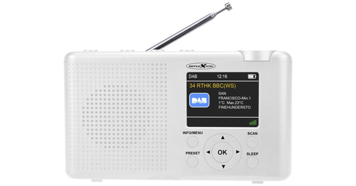 Reflexion Tra23Dab/Wh Desk Radio Dab+, Dab, Fm Dab+, Fm Rechargeable White