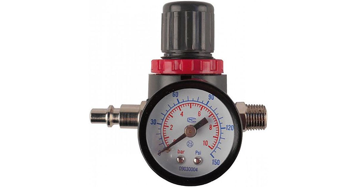 Max 2400 l/min. Reguleerimisvahemik 0.5-11 bar. Paigaldatakse trassi ja väljundvooliku vahele. Manomeetriga.