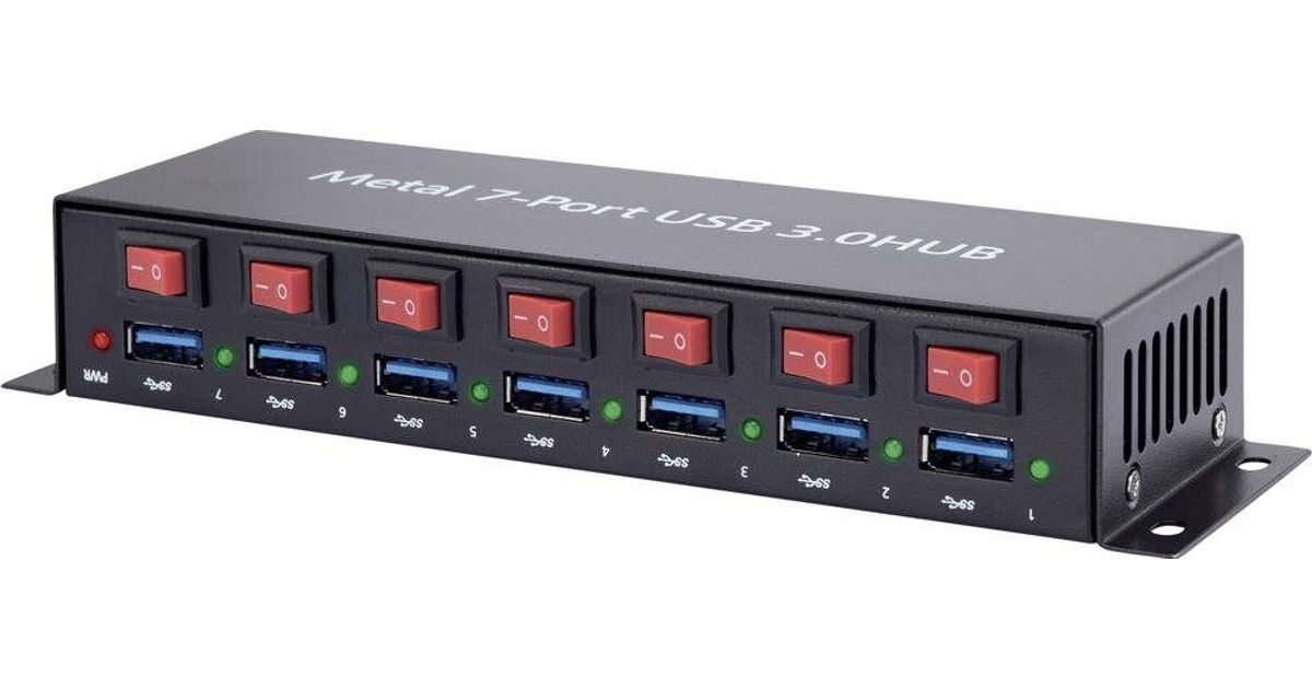 Renkforce 7 Port USB 3.0-Hub Metallgehäuse, einzeln schaltbar, zur Wandmontage Schwarz (1089874)