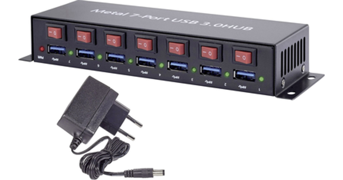 Renkforce Rf-3269622 7 Ports Usb 3.2 1St Gen (Usb 3.0) Hub Steel Casing, Individually Connectable, Wall Mount Option Black