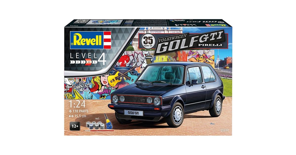 Revell Modellbausatz 05694 Volkswagen VW Golf GTI, Autobausatz im Maßstab 1:24 in der Pirelli-Sonderedition, maßstabsgetreu, mit vielen Details, Level 4, 144 aasta(t), Plast, Poiss, 12 tk, 155 mm, 35,1 cm