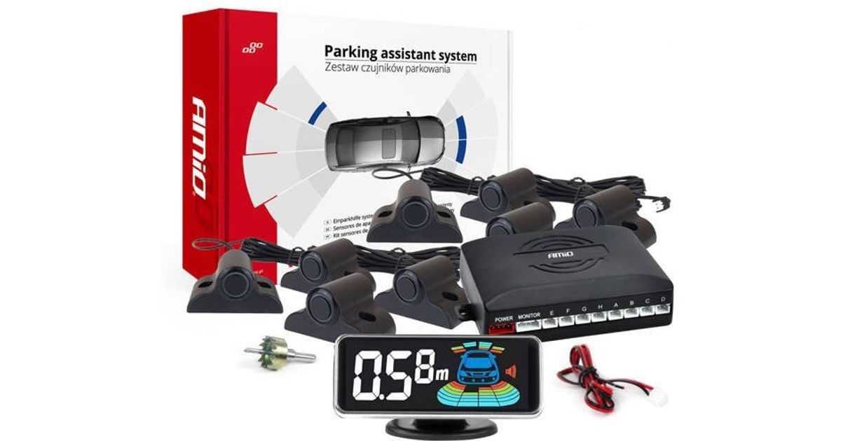 Reverse parking sensors black front rear led 3d truck bus amio-03195