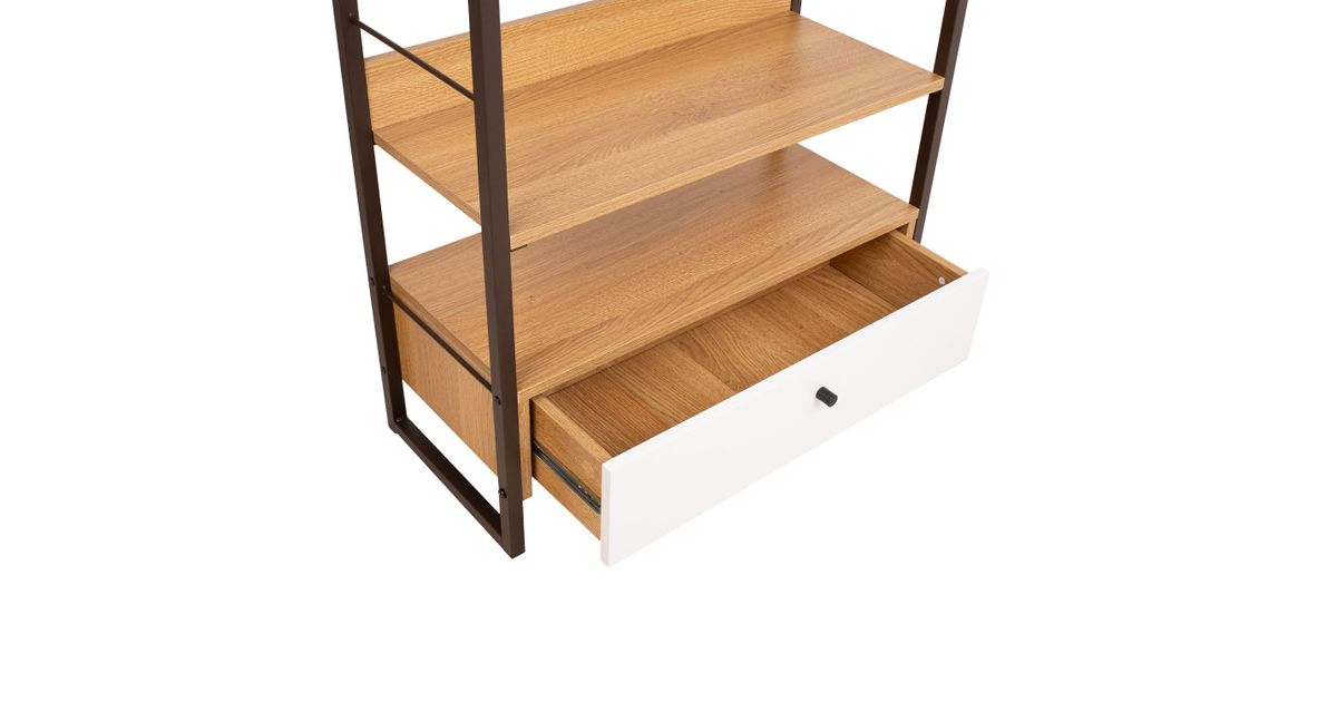Riiul STUDY 70x30xH124,5cm, tamm/valge