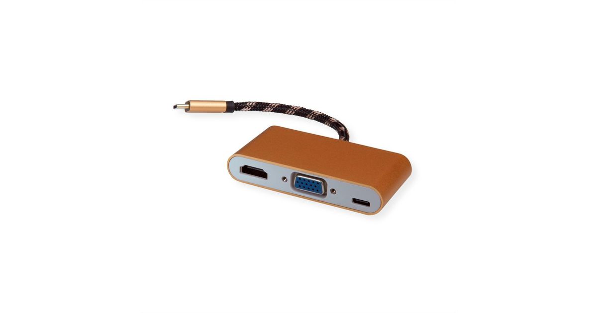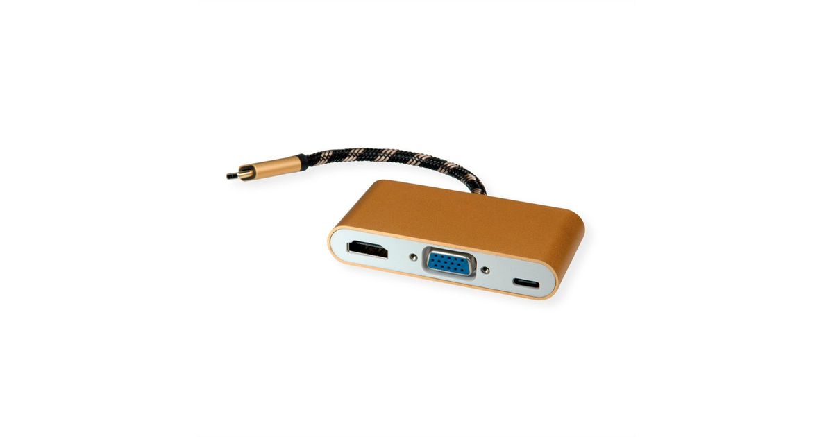 ROLINE 12.03.3155, USB 3.2 Gen 1 (3.1 Gen 1) Type-B, HDMI, USB 3.2 Gen 1 (3.1 Gen 1) Type-C, VGA, 3840 x 2160 pikslit, Must, Kuld, Valge, 0,1 m