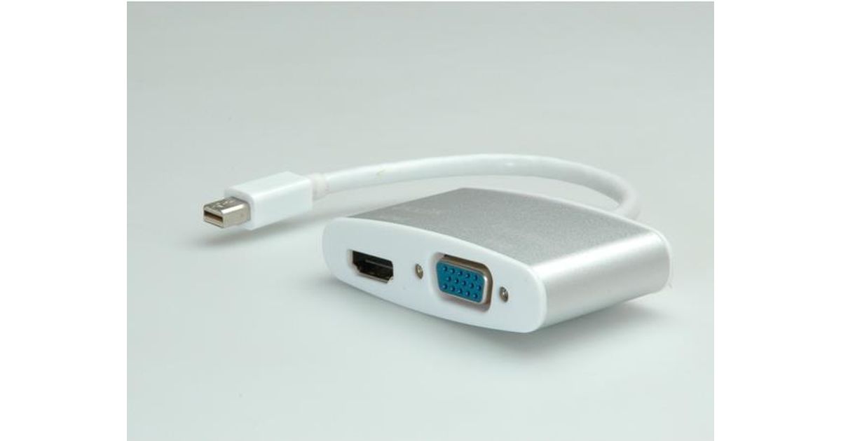 ROLINE 12.03.3161, 0,1 m, Mini DisplayPort, HDMI + VGA (D-Sub), Meessoost, Naissoost, Hõbe