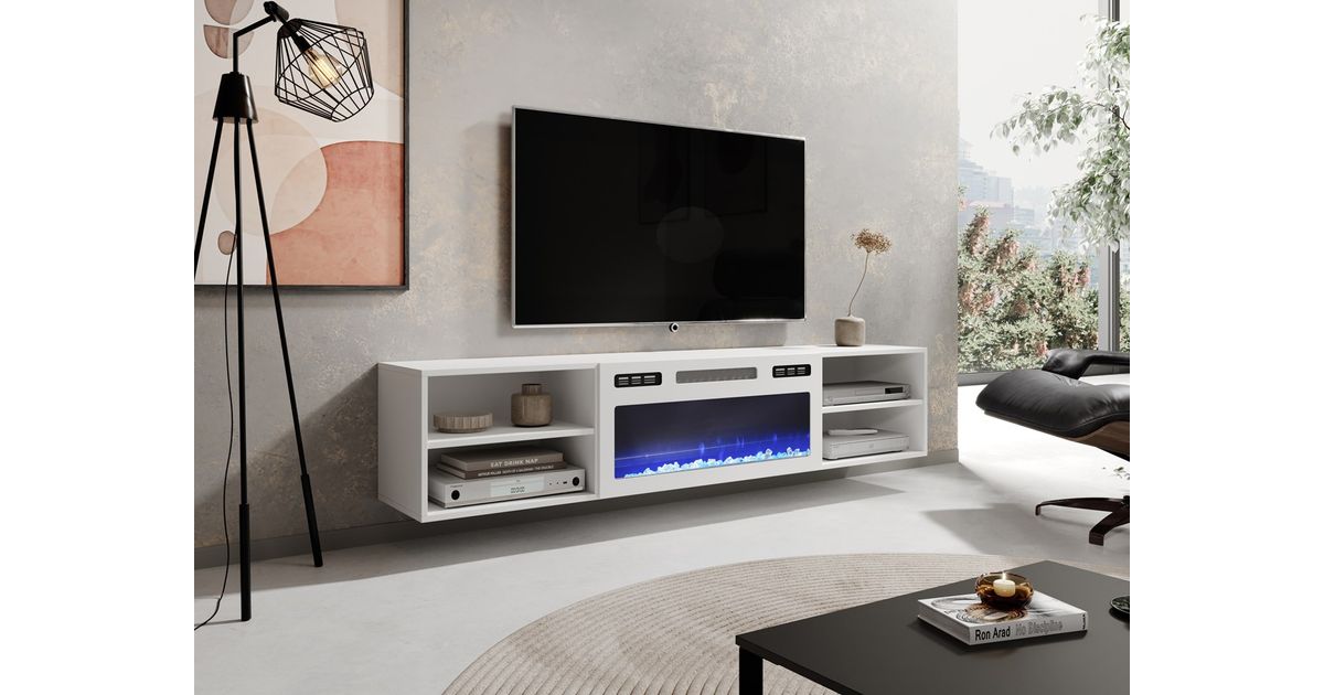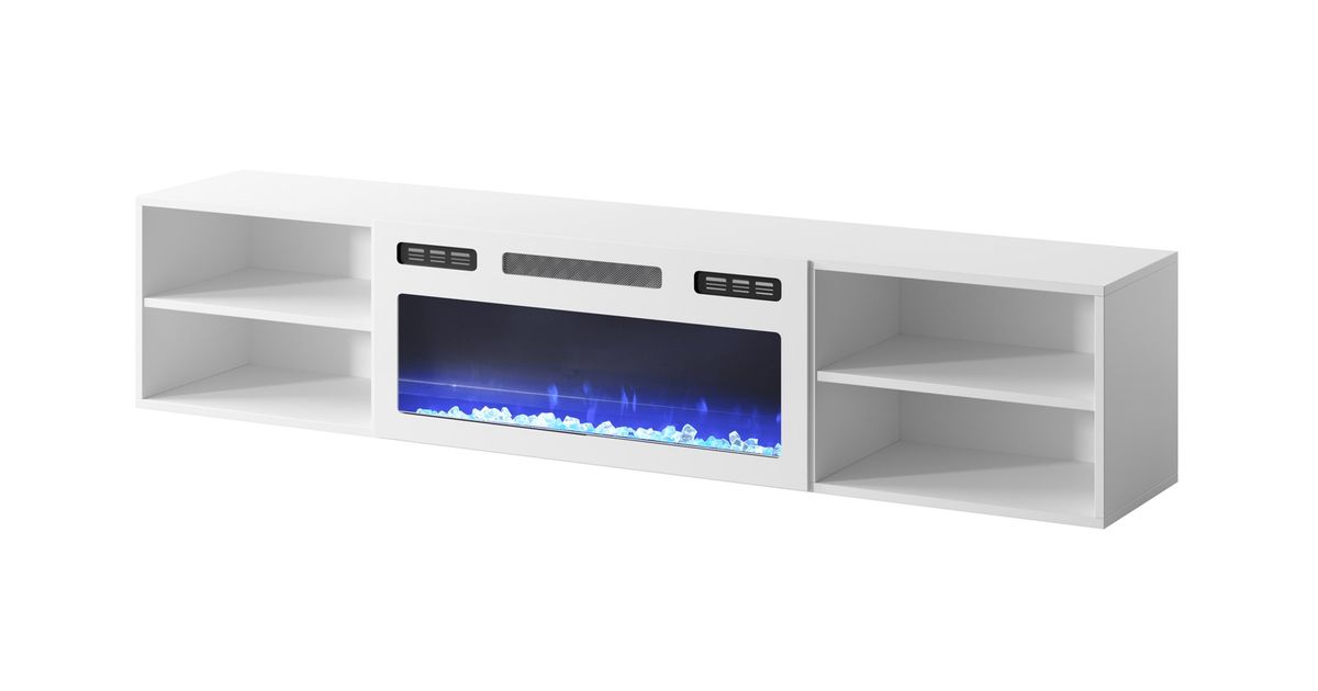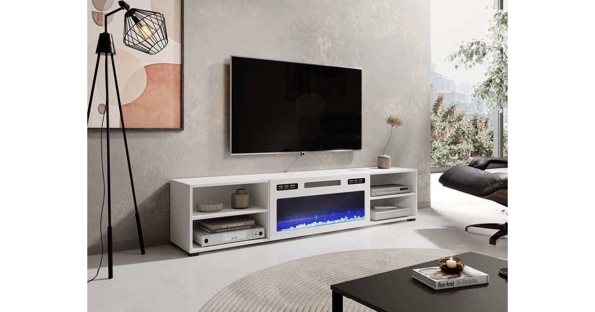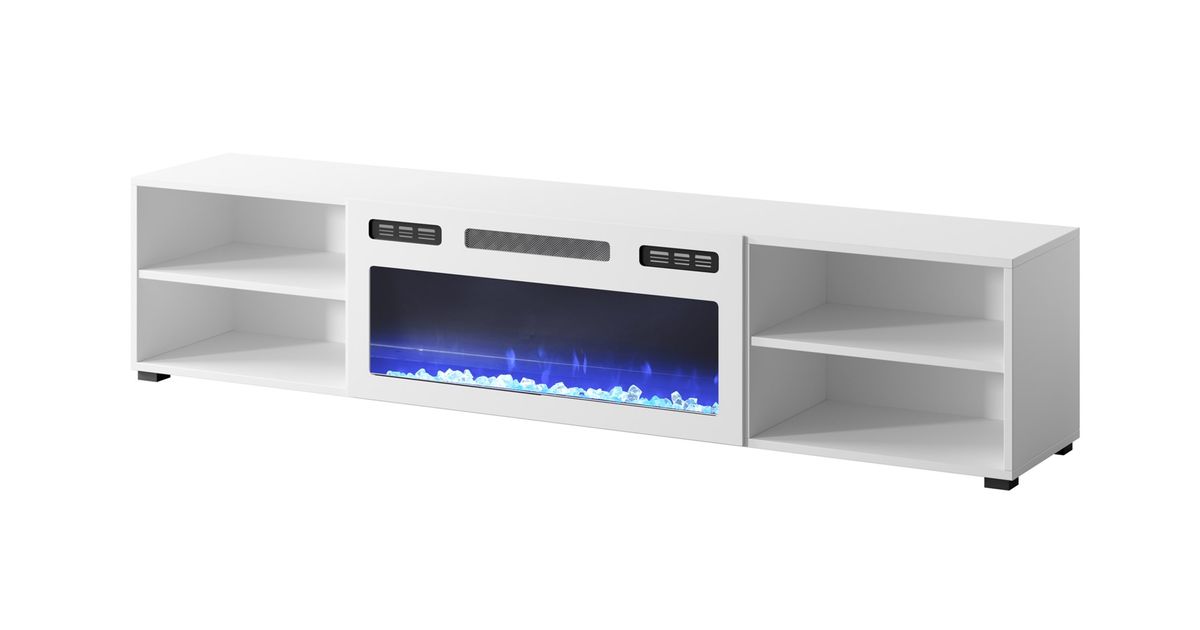 RTV cabinet POLO 180x33x39 white + fireplace white