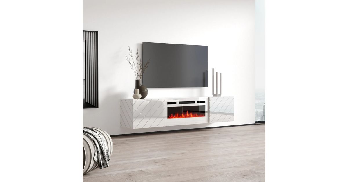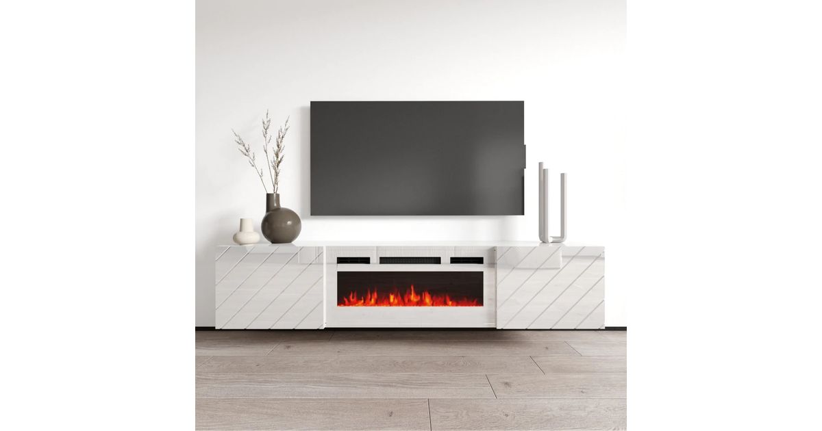 RTV LUXE cabinet 182.6x34.5x37.5 white/gloss white + white mantelpiece