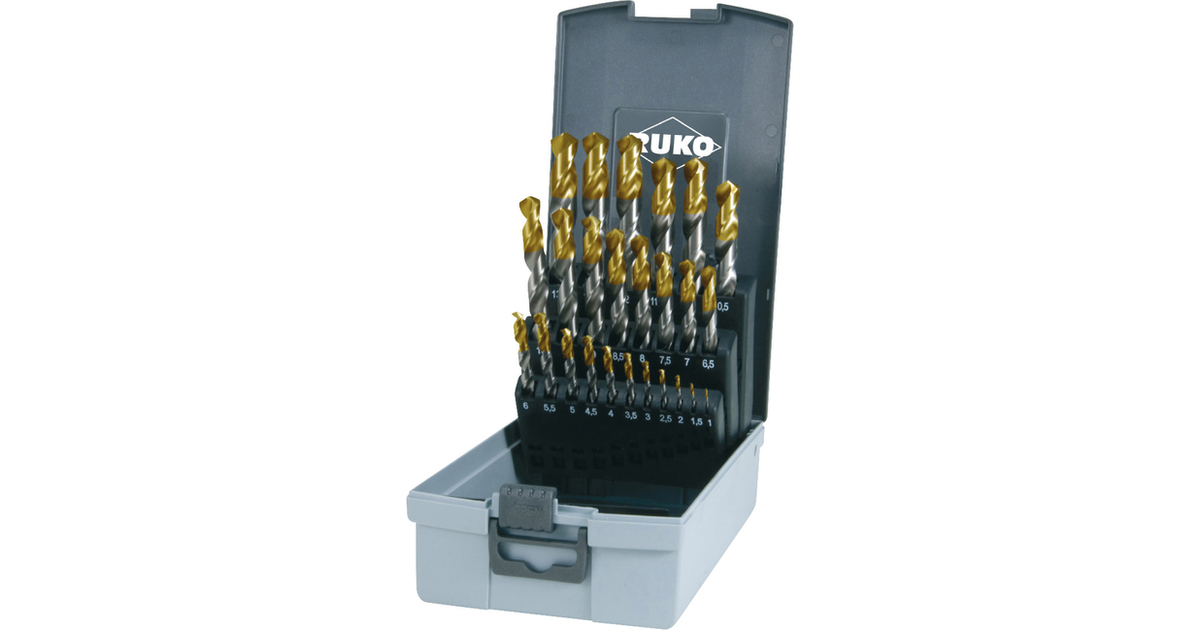 Ruko 2501215Tro Hss-G Twist Drill Bit Set 25-Piece 1 Mm, 1.5 Mm, 2 Mm, 2.5 Mm, 3 Mm, 3.5 Mm, 4 Mm, 4.5 Mm, 5 Mm, 5.5 Mm, 6 Mm, 6.5 Mm, 7 Mm, 7.5 Mm, 8 Mm, 8.5